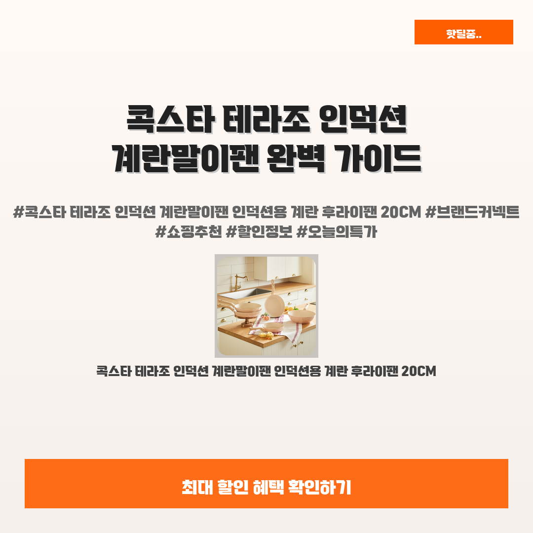 🛍️ 이 포스팅은 네이버 쇼핑 커넥트 활동의 일환으로,판매 발생 시 수수료를 제공받습니다.오늘 소개할 제품은 단언컨데,,바로 콕스타 테라조 인덕션 계란말이팬입니다!여러분, 아침에 딱 하나로 해결되는 맛있는 계란말이를 원하시나요?"콕스타 테라조 인덕션 계란말이팬 인덕션용 계란 후라이팬 20CM"와 함께라면 그 꿈이 현실이 된답니다!많은 분들이 요리할 때 부드러운 계란말이를 만들기 어려워하시죠? 하지만 이 팬 하나면 문제 해결!최고의 열전도율로 손쉽게 완벽한 계란말이를 만들어낼 수 있어요. 정말 감동적인 제품이에요!게다가 지금 대박 할인까지 진행 중이니, 이 기회를 놓치지 마세요!만족스럽지 않을 리 없는 가성비를 자랑하는 콕스타 테라조 인덕션 계란말이팬, 추천드려요!※ 이거 진짜 제가 직접 써보고 쓰는 리..
